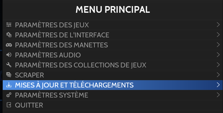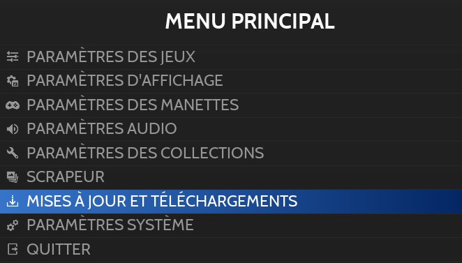 Pour mettre à jour, ouvrir le menu principal (bouton START) et sélectionner MISES A JOUR ET TELECHARGEMENTS