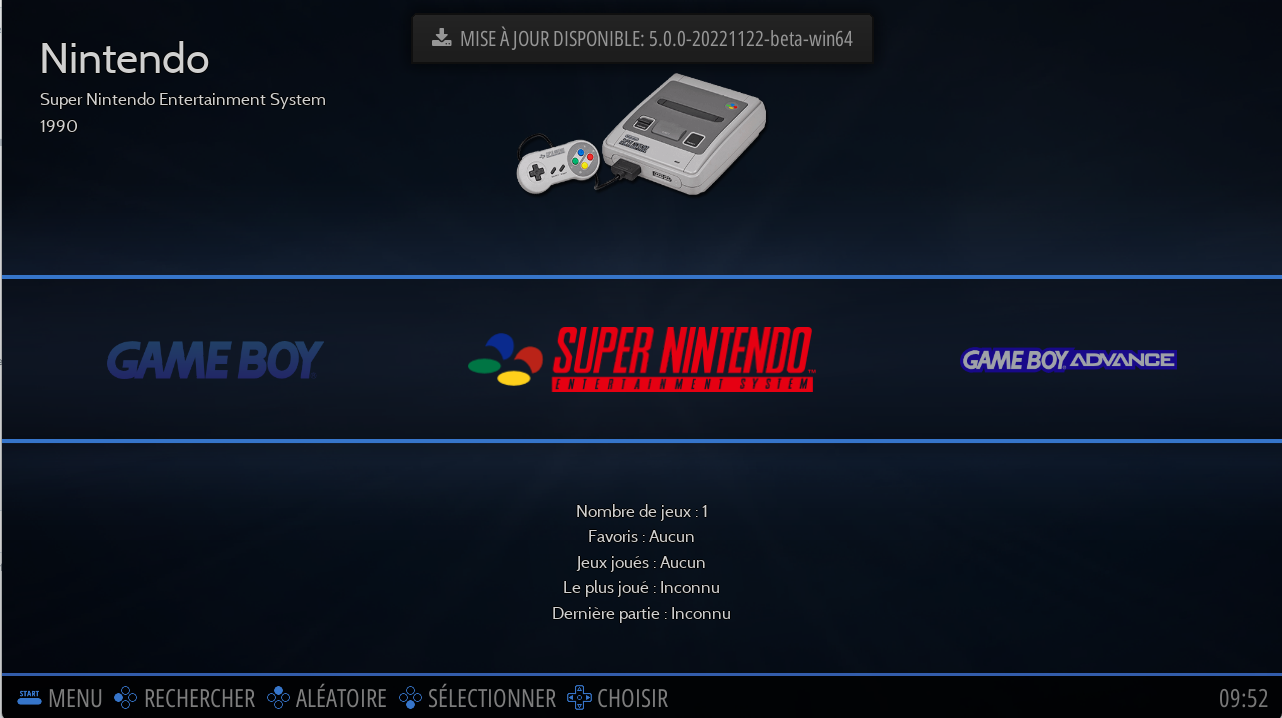 Lorsqu'une nouvelle version de Retrobat est disponible, un message comme celui-ci apparaîtra dans l'interface: