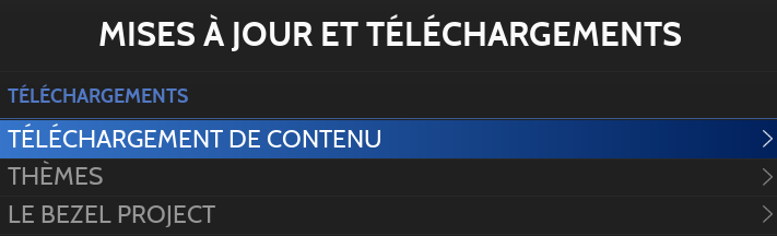 Retrobat met à disposition, dans le menu MISES A JOUR ET TELECHARGEMENTS > TÉLÉCHARGEMENT DE CONTENU, une liste de jeux libres de droits et de Médias qu'ils est possible de télécharger librement.