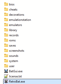 The RetroBat folder structure looks like this: