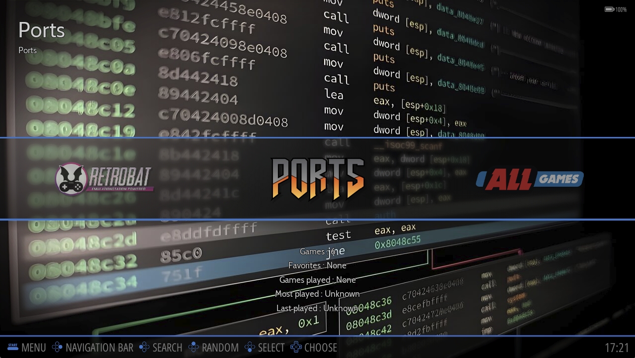 On this view, you can navigate with the keyboard or with a game controller. If your controller is not automatically configured by RetroBat: