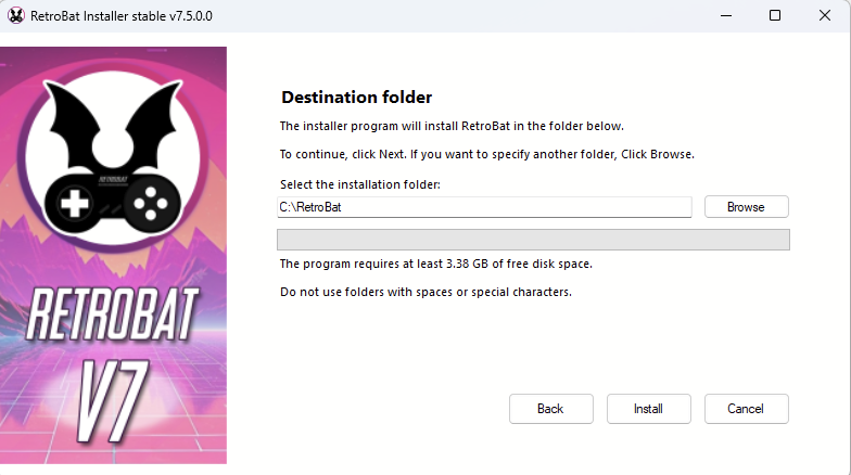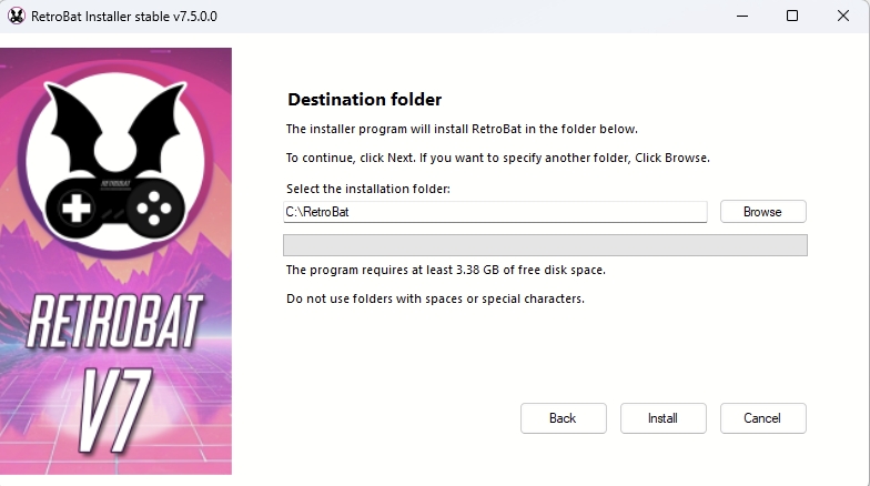 Attention: an installation folder that is too long (or with too many subfolders) can cause issues with some emulators like libretro:mame.
