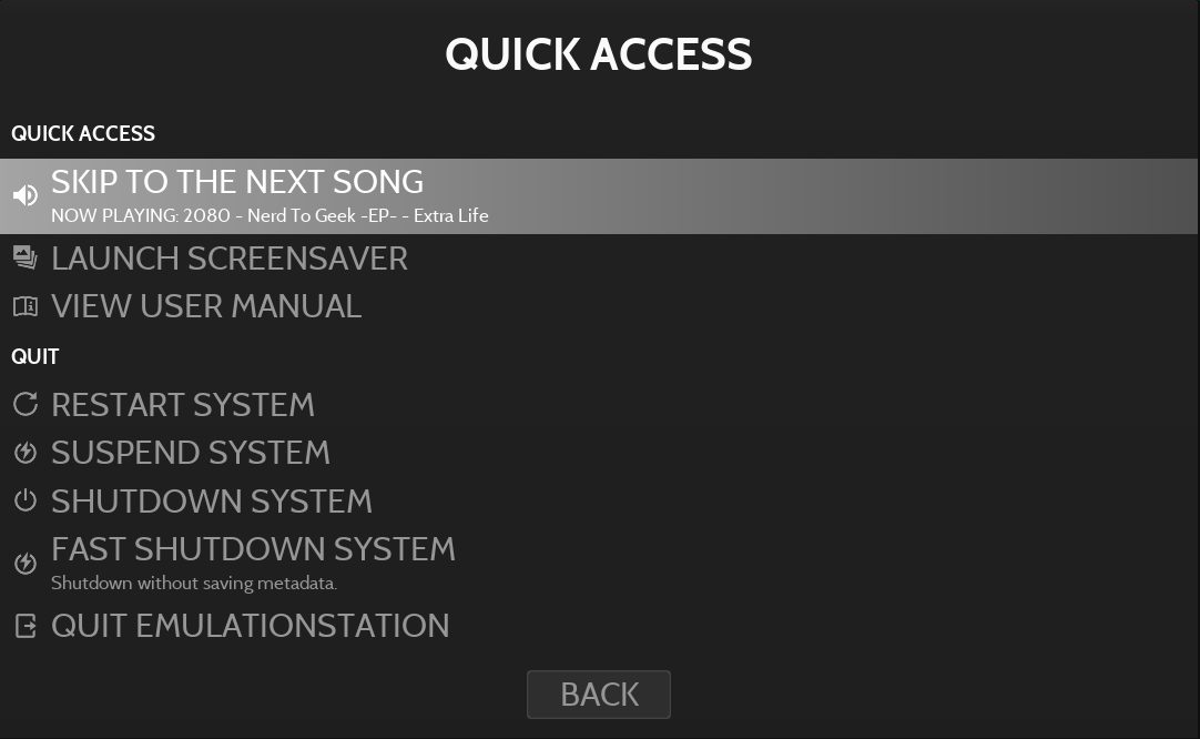 NB : enabling the "ONLY PLAY SYSTEM-SPECIFIC MUSIC FOLDER" option allows RetroBat to play all songs located in a system folder (eg. /music/3do/) while browing the games available in this specific system list, but not the songs located in others subfolders.