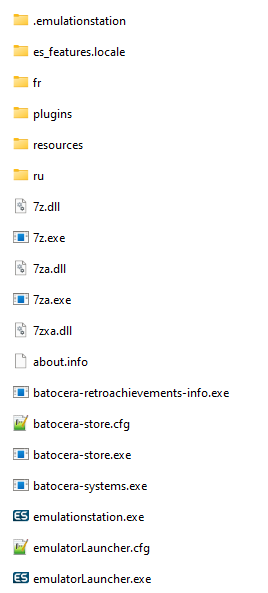This folder contains the main executables used for RetroBat interface and for the executable used to configure and run emulators. The structure is the following: