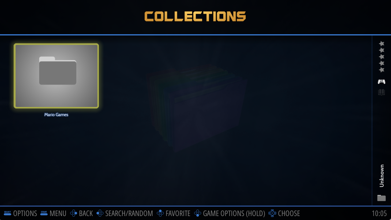 For the FAVORITE collection, you need to flage your favorite games, this can be done in the Game Options menu.