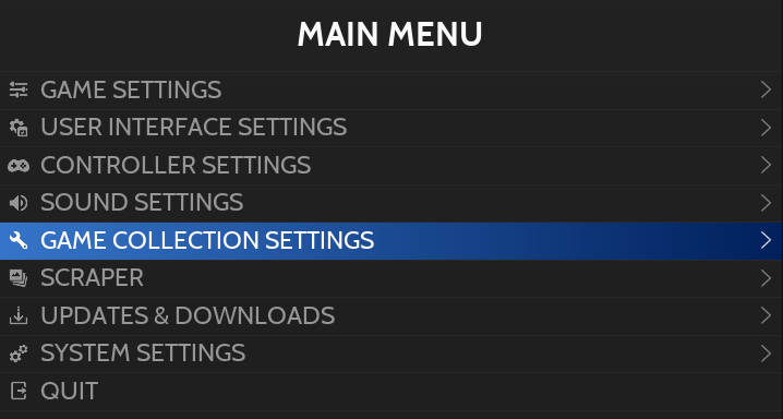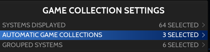From the GAME COLLECTION SETTINGS screen, select AUTOMATIC GAME COLLECTIONS.