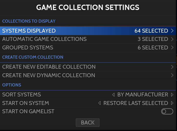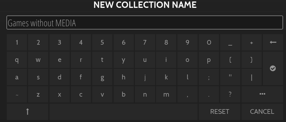 From the GAME COLLECTION SETTINGS screen, select CREATE NEW DYNAMIC COLLECTION.