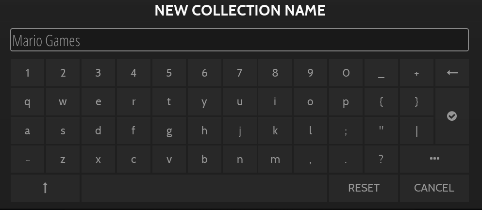 From the GAME COLLECTION SETTINGS screen, select CREATE NEW EDITABLE COLLECTION.