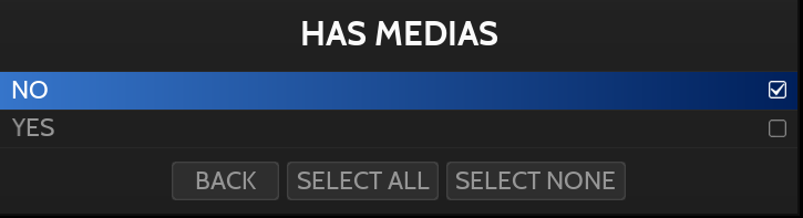 Select the filters you want to apply to your Collection (for example HAS MEDIAS = NO) and go BACK.