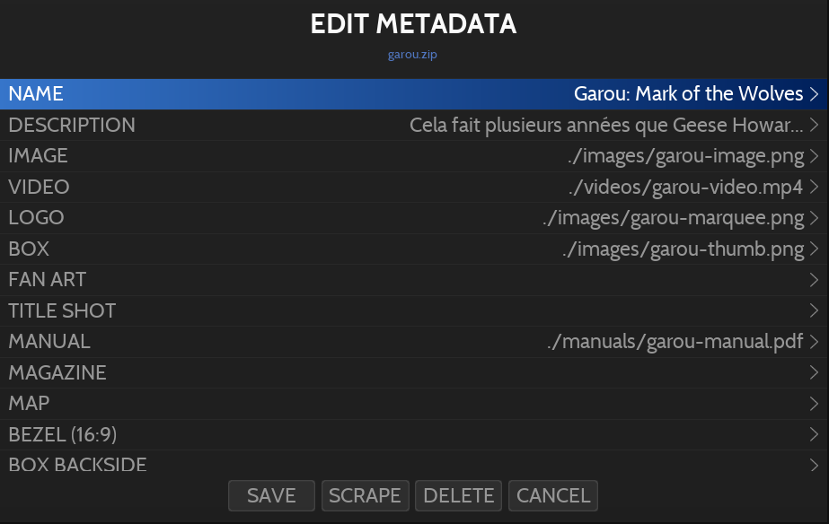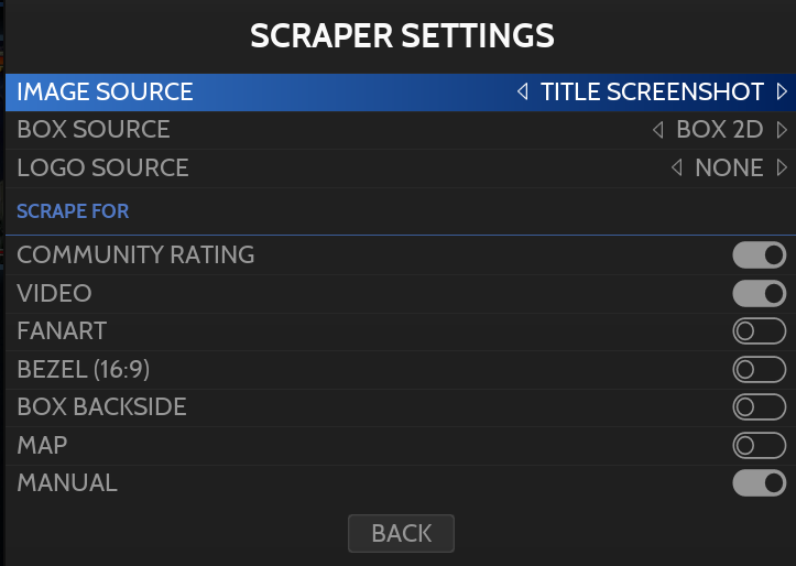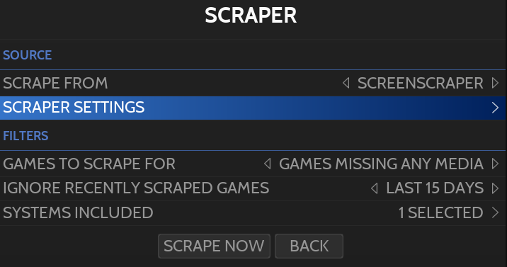 Scraping is used for downloading metadata and media files (images, videos, maps, pad-to-key settings and manuals) for games in your collection.