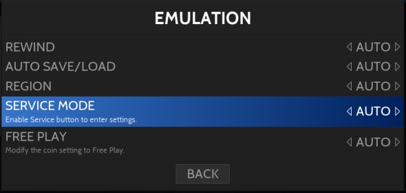 Some games have a per-game menu for accessing the machine's advanced configuration such as its dip switches, service mode and diagnostic input.