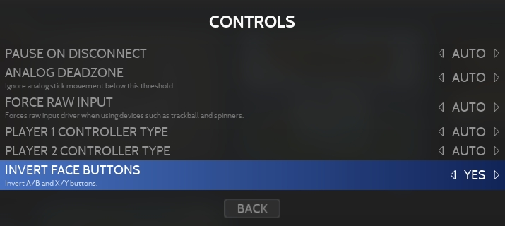 An alternative layout is available, it allows to match button names with XBOX layout: