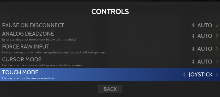 Except standalone MelonDS emulator, all emulators can simulate touchscreen with the joystick, this can usually be enabled in the advanced options > controls: