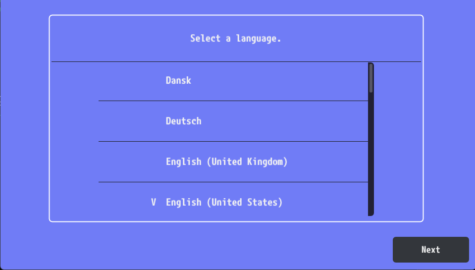 Upon first startup, the emulator will need to be setup, first step is to select the language: