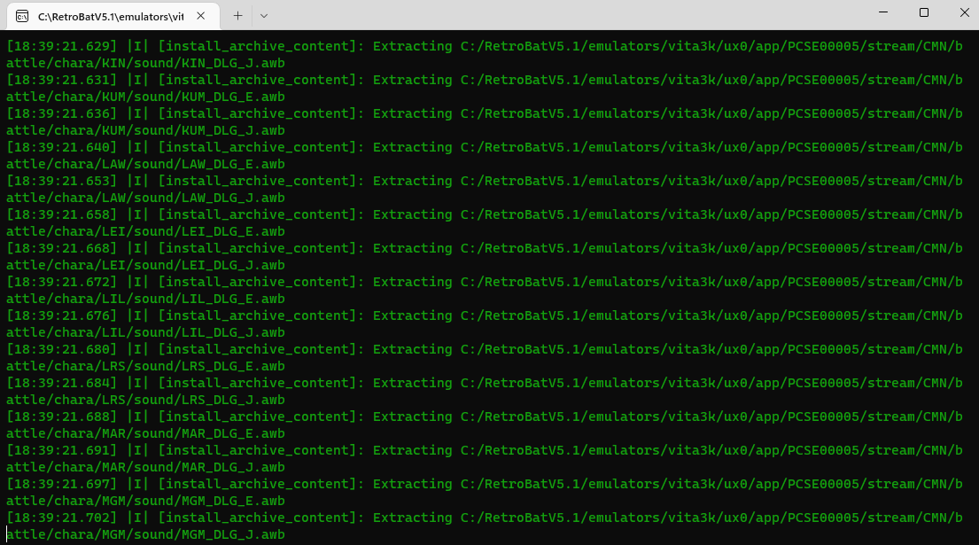 When running the game for the first time, Retrobat will automatically install it inside the emulator, wait until the operation finishes (this might take some time):