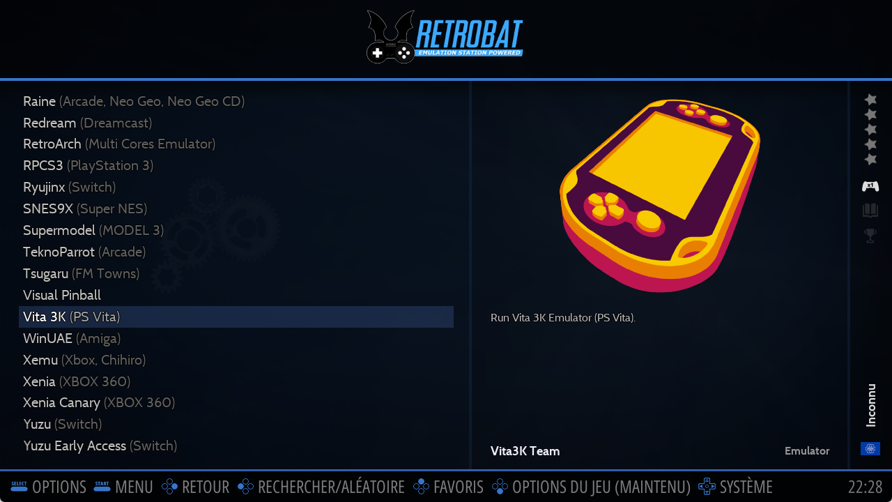 Use Retrobat Menu to download Vita3k or download the latest build of Vita3K emulator on the vita3k website : https://vita3k.org/#download