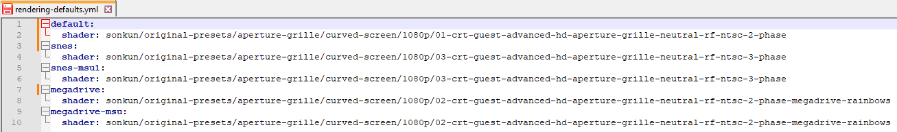 Finally, some standalone emulators can also use the retroarch shaders. In this case, the name of the emulator should be add as an additionnal line.