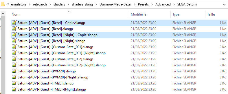 First, we will need to copy the existing presets located in the emulators\retroarch\shaders\Mega_Bezel_Packs\Duimon-Mega-Bezel\ folder.