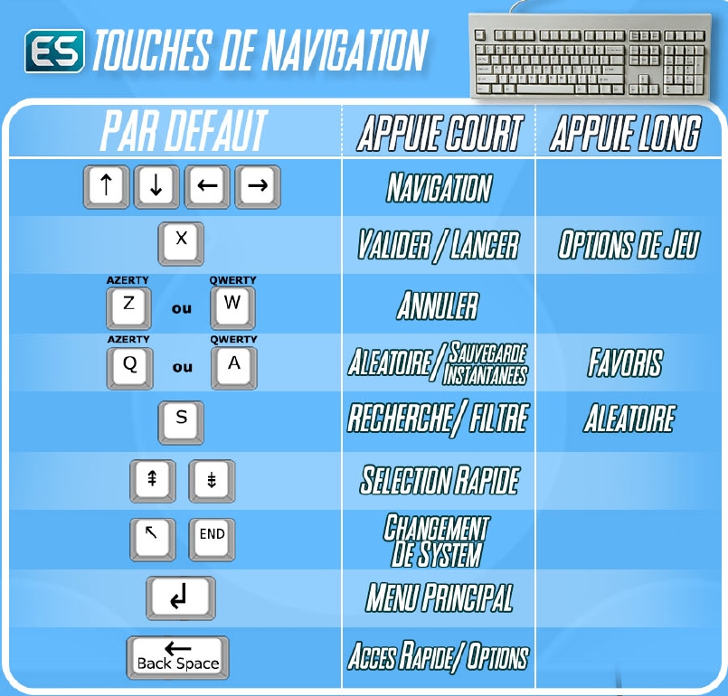 Il est possible de naviguer dans les écrans et menu en utilisant une manette de jeu ou un clavier.